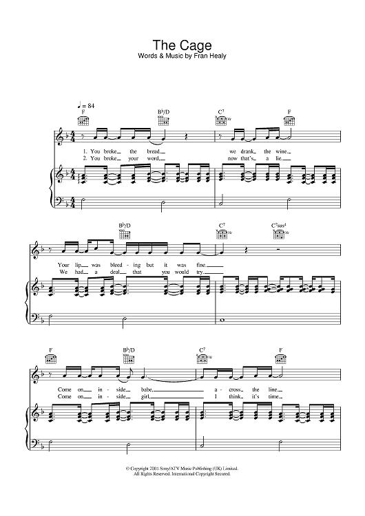 "The Cage" Sheet Music by Travis