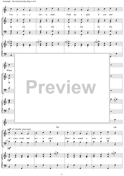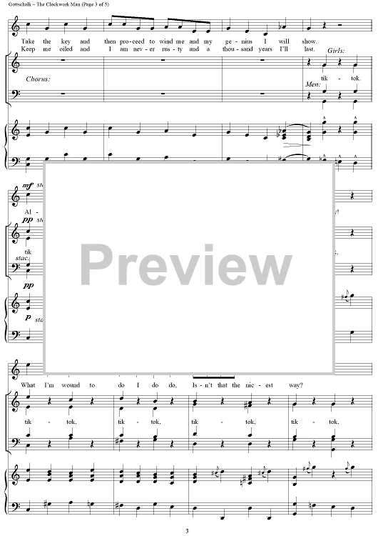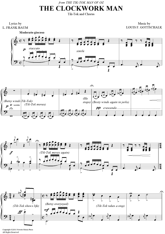 Digital Sheet Music for The Clockwork Man by Louis F. Gottschalk, L. Frank Baum scored for Piano/Vocal; id:427661