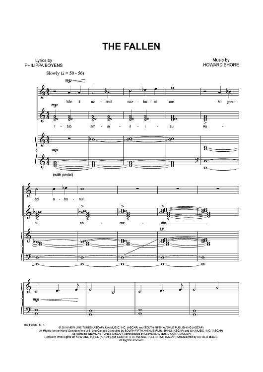 Digital Sheet Music for The Fallen by Howard Shore, Philippa Boyens scored for Piano/Vocal; id:449565