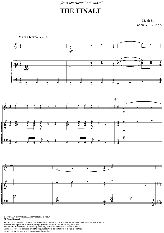 Digital Sheet Music for The Finale - from the movie "Batman" by Danny Elfman scored for Piano Accompaniment; id:116387