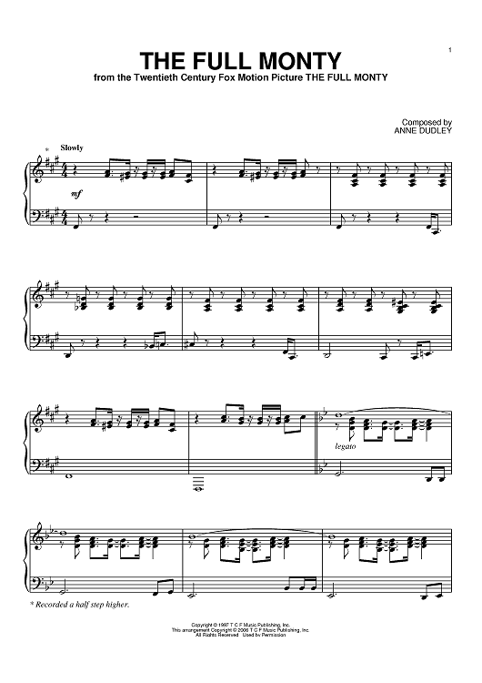 Digital Sheet Music for The Full Monty by Anne Dudley scored for Piano; id:388941