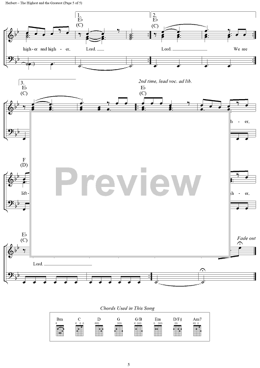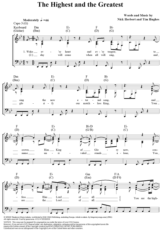 Digital Sheet Music for The Highest and the Greatest by Tim Hughes, Nick Herbert scored for Piano/Vocal/Chords; id:360937