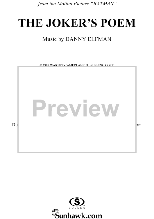 "The Joker's Poem - from the movie "Batman"" Sheet Music by Danny Elfman