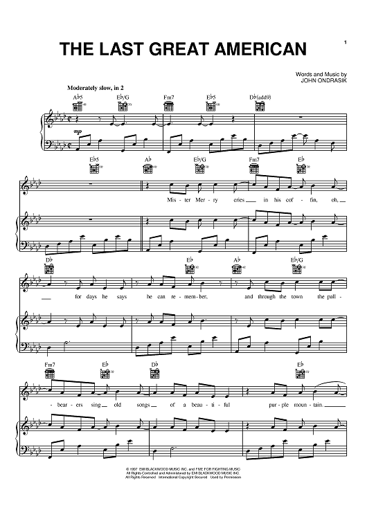 "The Last Great American" Sheet Music by Five for Fighting