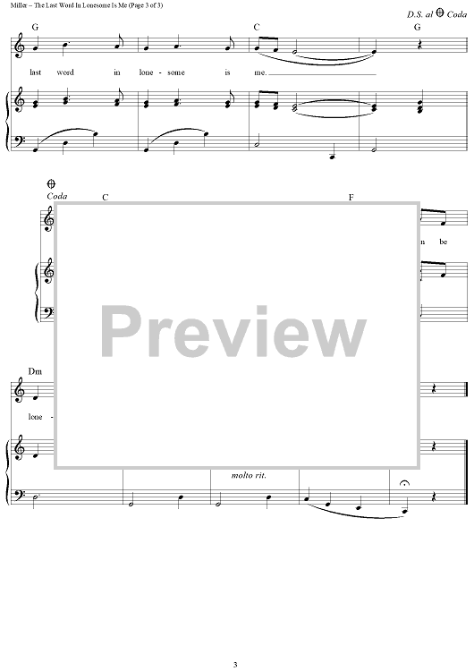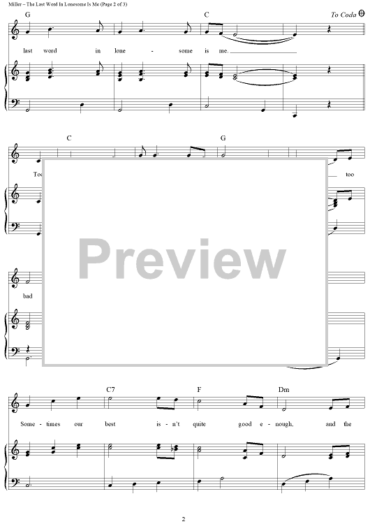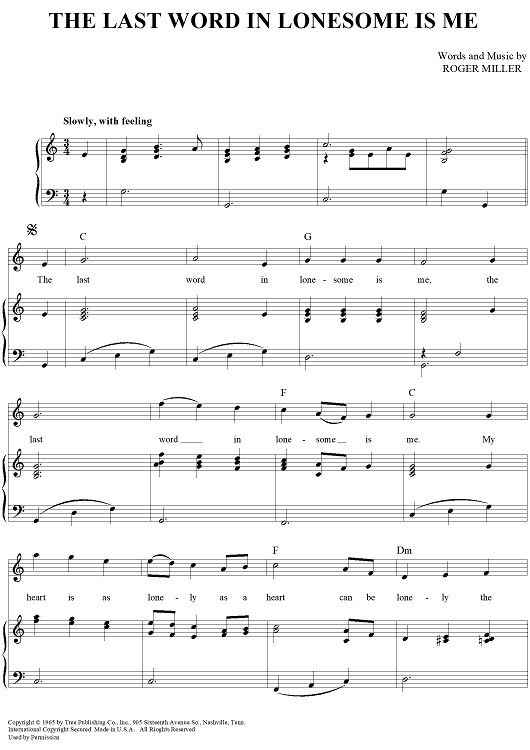 Digital Sheet Music for The Last Word In Lonesome Is Me by Roger Miller, Eddy Arnold scored for Piano/Vocal/Chords; id:362860