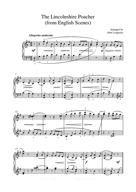 Digital Sheet Music for The Lincolnshire Poacher by J. Longmire scored for Piano; id:382349