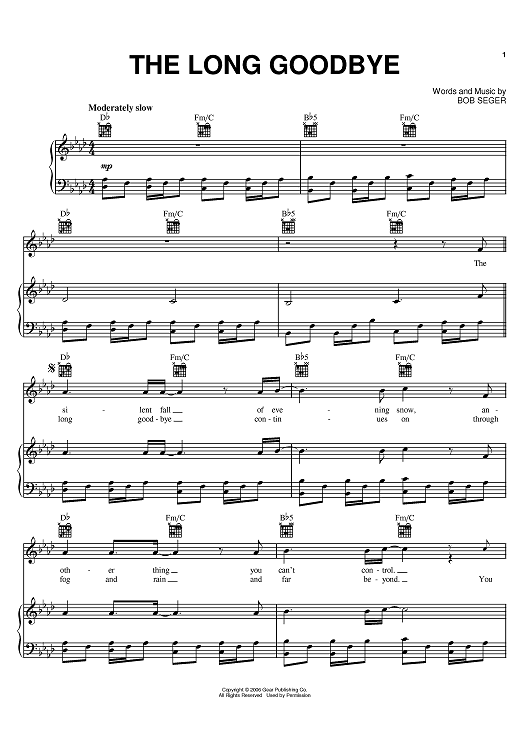 Digital Sheet Music for The Long Goodbye by Bob Seger scored for Piano/Vocal/Chords; id:397716