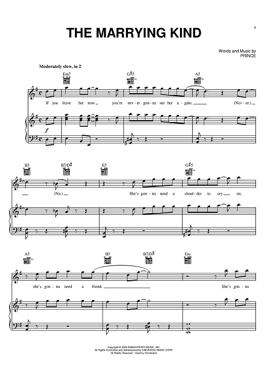 Digital Sheet Music for The Marrying Kind by Prince scored for Piano/Vocal/Chords; id:389713