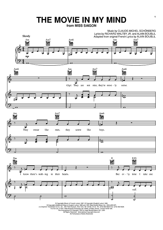 Digital Sheet Music for The Movie In My Mind by Claude-Michel Schonberg, Alain Boublil, Richard Maltby Jr. scored for Piano/Vocal/Chords; id:384789