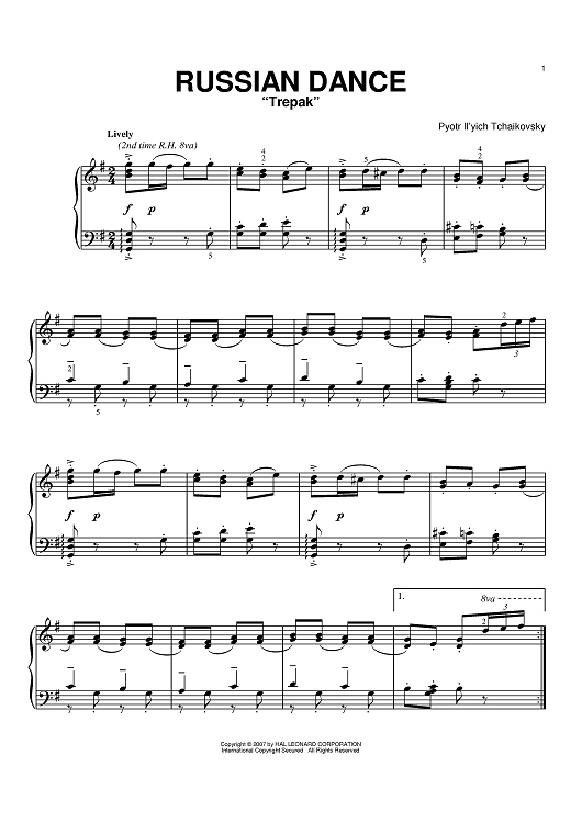 "The Nutcracker. Russian Dance ("Trepak")" Sheet Music by Peter Ilyich Tchaikovsky