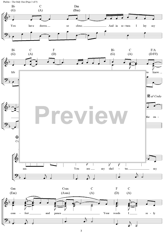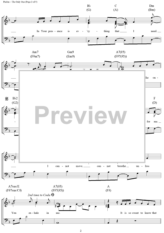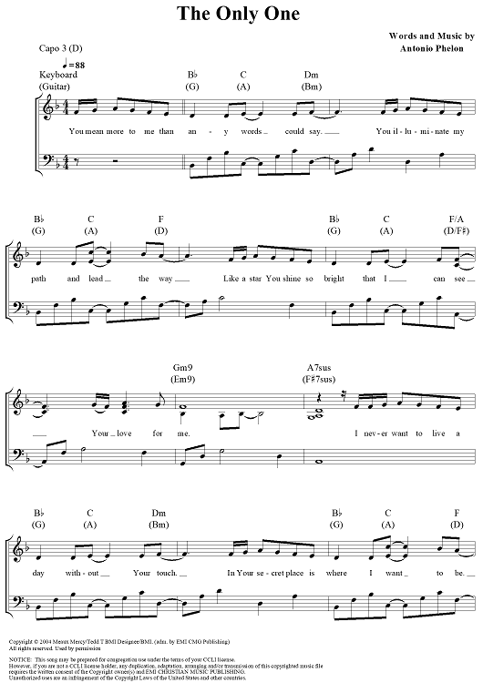 Digital Sheet Music for The Only One by Antonio Phelon, Antonio Neal scored for Piano/Vocal/Chords; id:321036