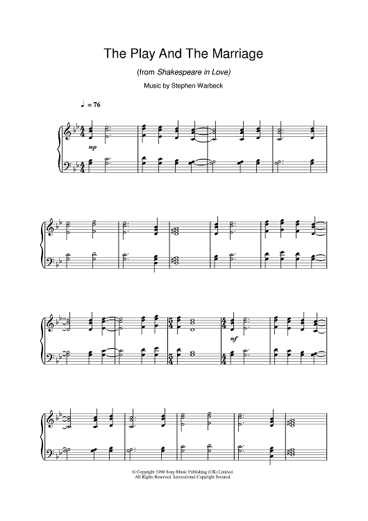 Digital Sheet Music for The Play And The Marriage by Stephen Warbeck scored for Piano; id:398149