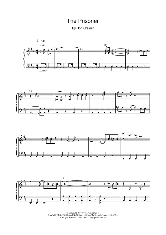 Digital Sheet Music for The Prisoner by Ron Grainer scored for Piano; id:377155