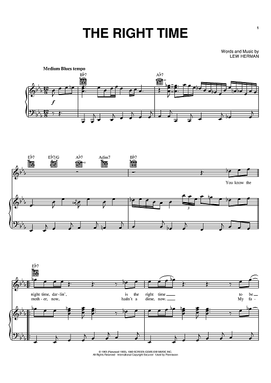 Digital Sheet Music for The Right Time by Ray Charles, Lew Herman scored for Piano/Vocal/Chords; id:384463