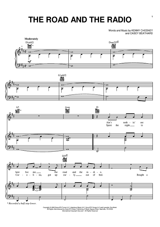 Digital Sheet Music for The Road And The Radio by Kenny Chesney, Casey Beathard scored for Piano/Vocal/Chords; id:389005