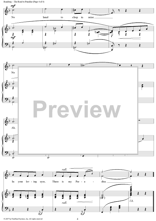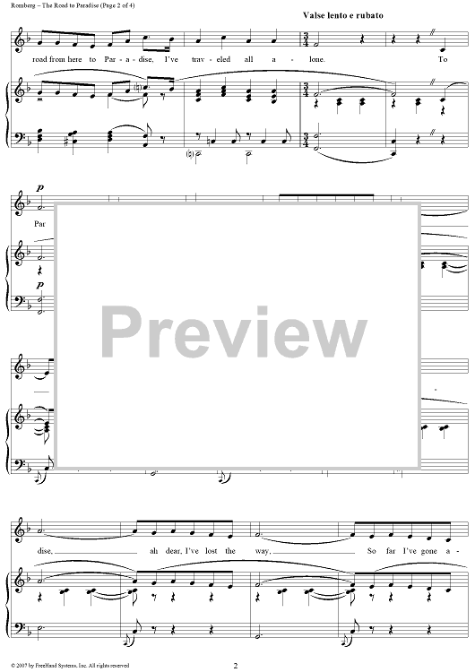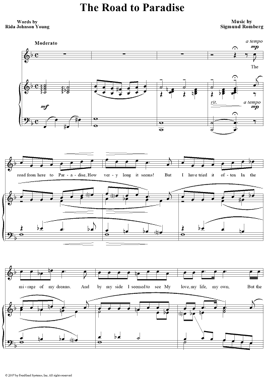 Digital Sheet Music for The Road to Paradise by Sigmund Romberg, Rida Johnson Young scored for Piano/Vocal; id:359409