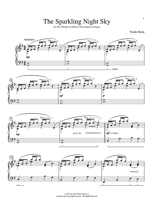 Digital Sheet Music for The Sparkling Night Sky by Naoko Ikeda scored for Piano; id:398862