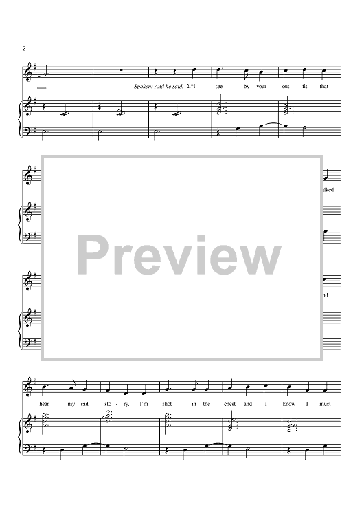 Digital Sheet Music for The Streets of Laredo by Johnny Cash, John A. Lomax, American Folk Song, Slick Rick, Alan Lomax scored for Piano/Vocal; id:369742