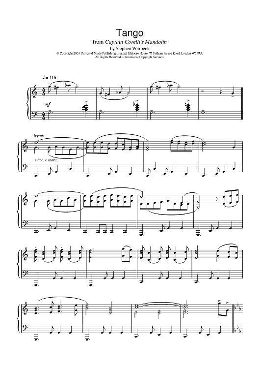 Digital Sheet Music for The Tango by Stephen Warbeck scored for Piano; id:382601