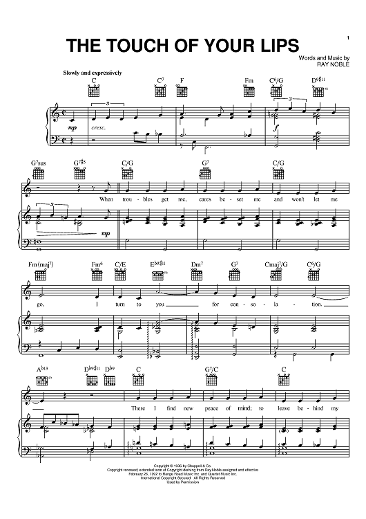 "The Touch Of Your Lips" Sheet Music by Ray Noble
