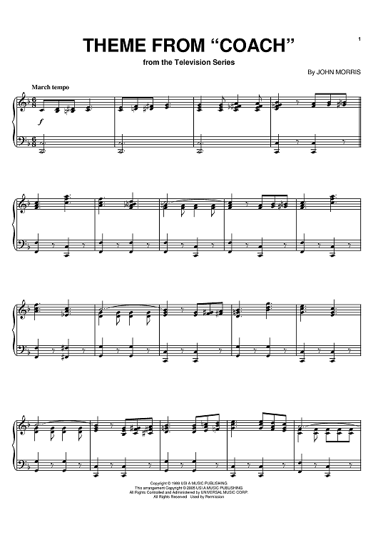 Digital Sheet Music for Theme From "Coach" by John Morris scored for Piano; id:384019