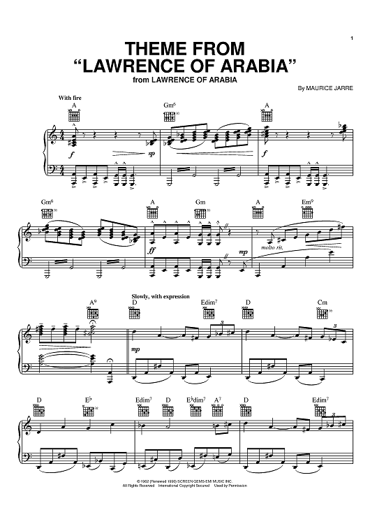 Digital Sheet Music for Theme From 'Lawrence Of Arabia' by Maurice Jarre scored for Piano/Vocal/Chords; id:368728