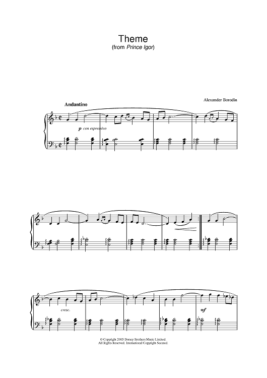 Digital Sheet Music for Theme From Prince Igor by Alexander Borodin scored for Piano; id:390850