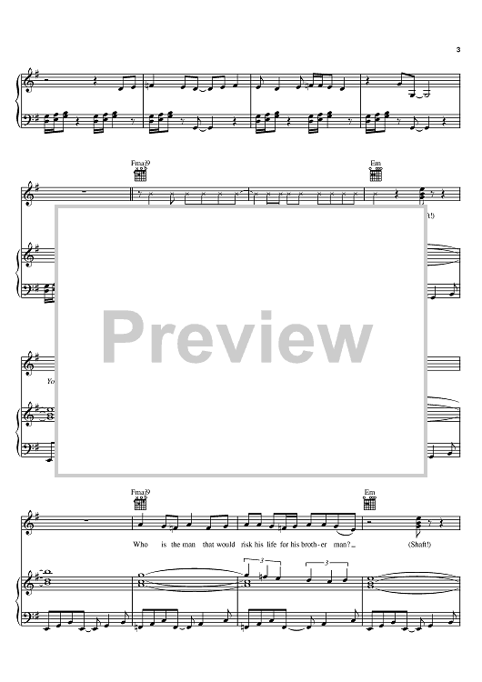 Digital Sheet Music for Theme From Shaft by Isaac Hayes scored for Piano/Vocal/Chords; id:367545