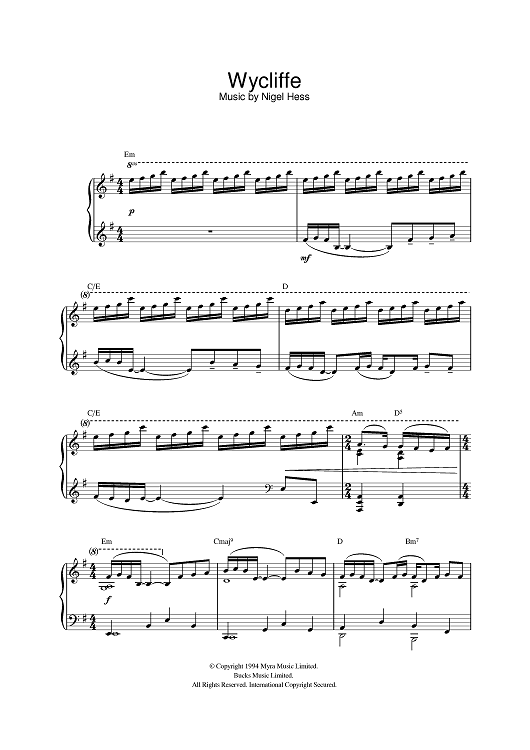 Digital Sheet Music for Theme from Wycliffe by Nigel Hess scored for Piano; id:384760