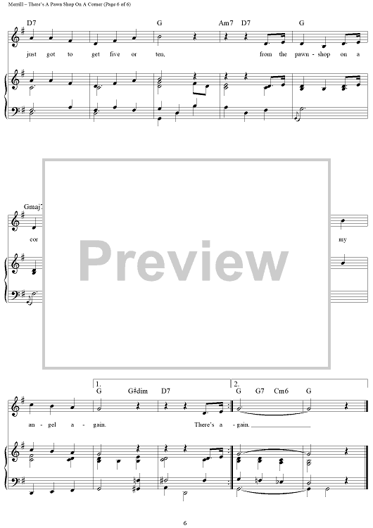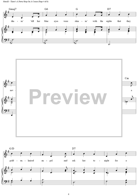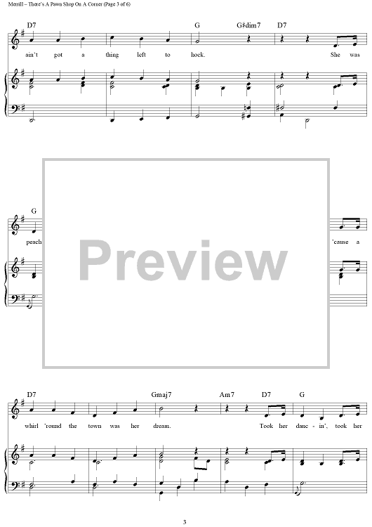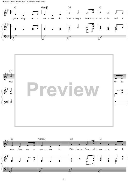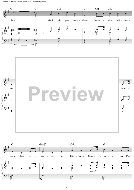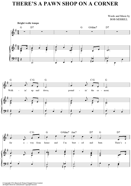 Digital Sheet Music for There's a Pawn Shop On A Corner by Bob Merrill scored for Piano/Vocal/Chords; id:464608