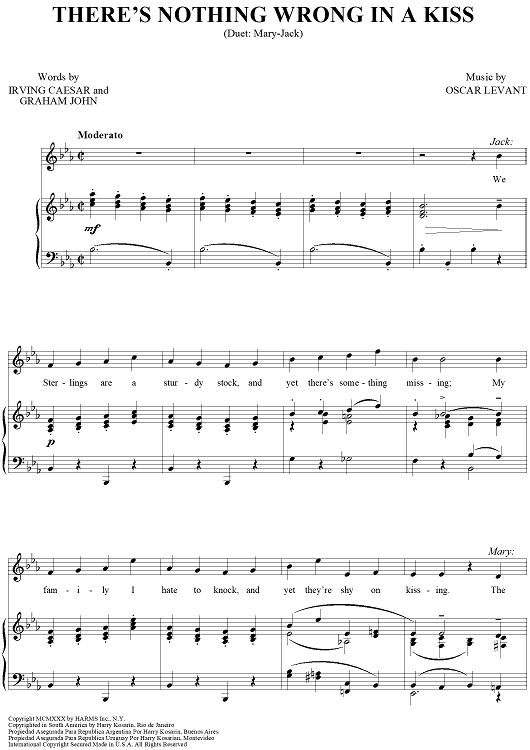 Digital Sheet Music for There's Nothing Wrong In A Kiss by Irving Caesar, Oscar Levant, Graham John scored for Piano/Vocal; id:427674