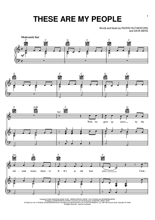 Digital Sheet Music for These Are My People by Rivers Rutherford, Rodney Atkins, Dave Berg scored for Piano/Vocal/Chords; id:397904