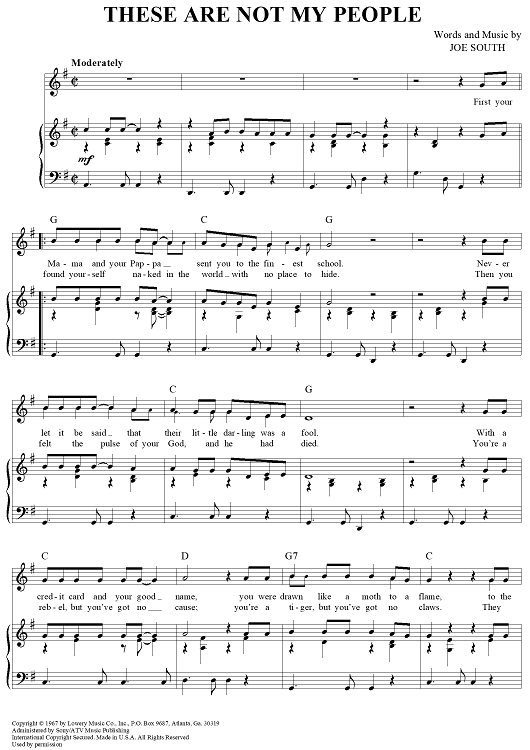 Digital Sheet Music for These Are Not My People by Joe South, Freddy Weller scored for Piano/Vocal/Chords; id:362775