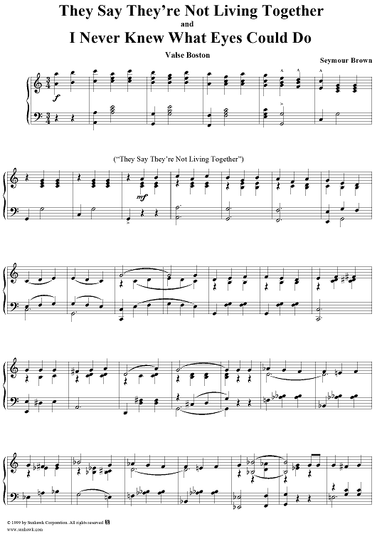 Digital Sheet Music for They Say They're Not Living Together / I Never Knew What Eyes Could Do medley (Valse Boston) by A. Seymour Brown scored for Piano/Vocal; id:273739