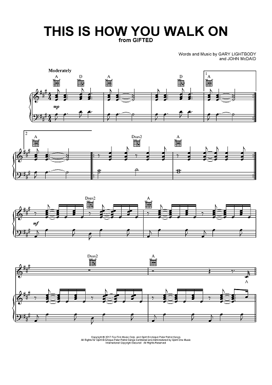 "This Is How You Walk On" Sheet Music by Gary Lightbody