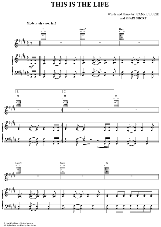 Digital Sheet Music for This Is the Life by Hannah Montana, Jeannie Lurie, Shari Short scored for Piano/Vocal/Chords; id:366978