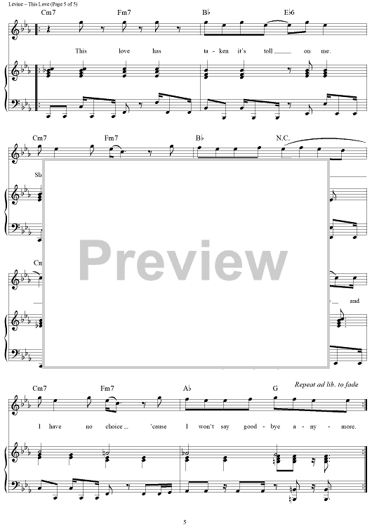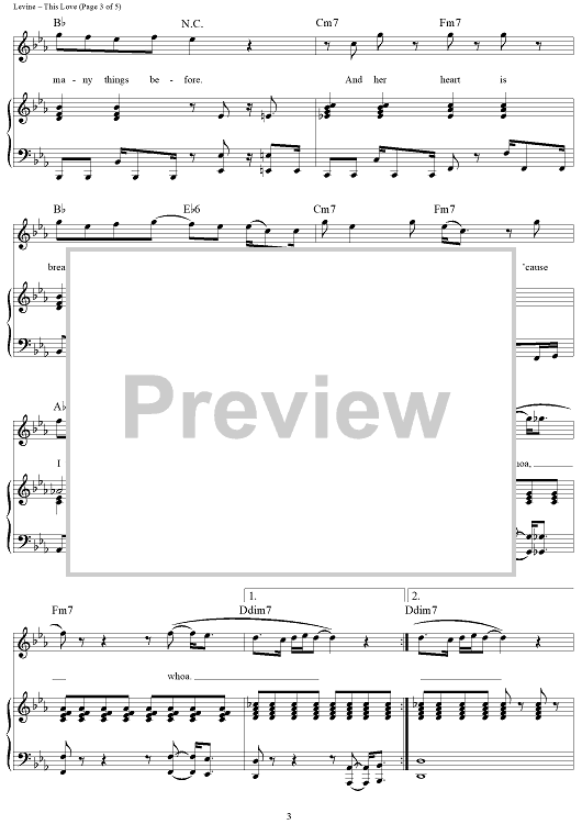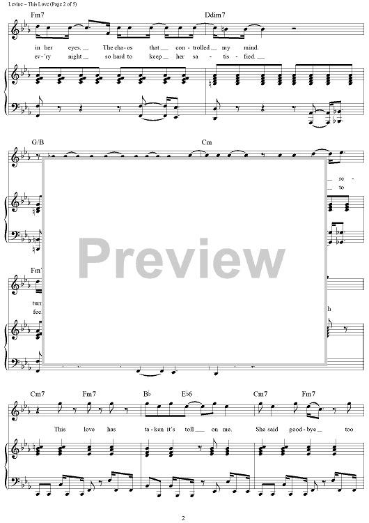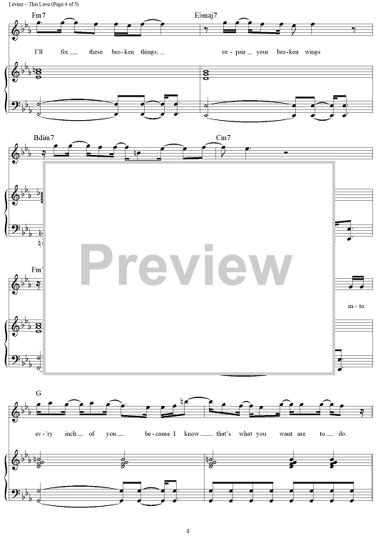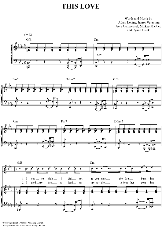 Digital Sheet Music for This Love by Michael Buble, Adam Levine, Jesse Carmichael, Mickey Madden, Maroon 5, James Valentine, Ryan Dusick scored for Piano/Vocal/Chords; id:362521