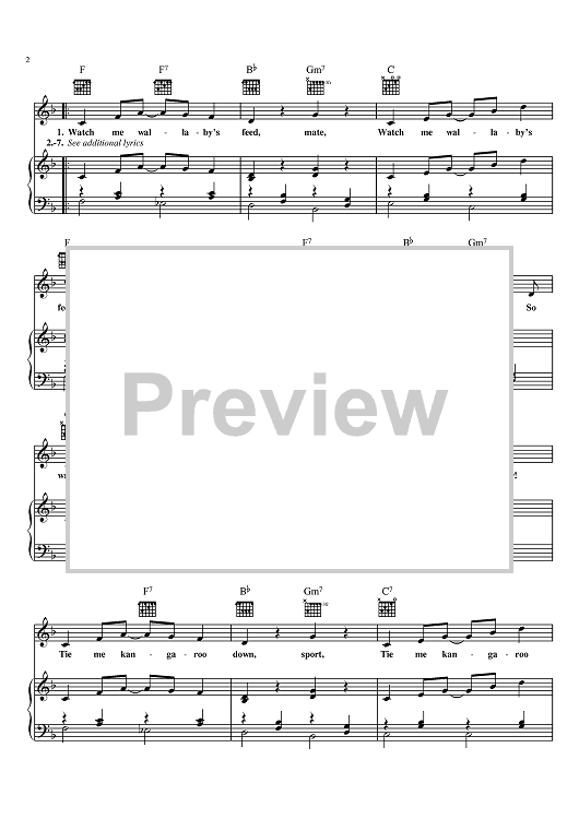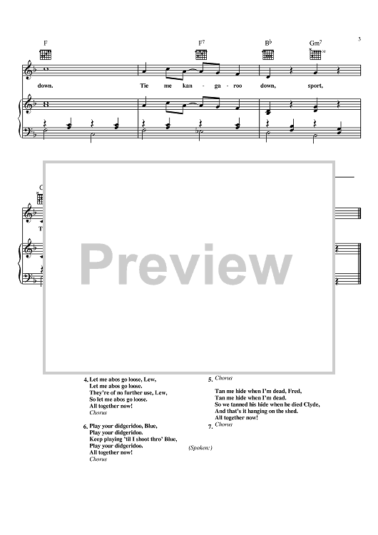 Digital Sheet Music for Tie Me Kangaroo Down Sport by Rolf Harris scored for Piano/Vocal/Chords; id:368783