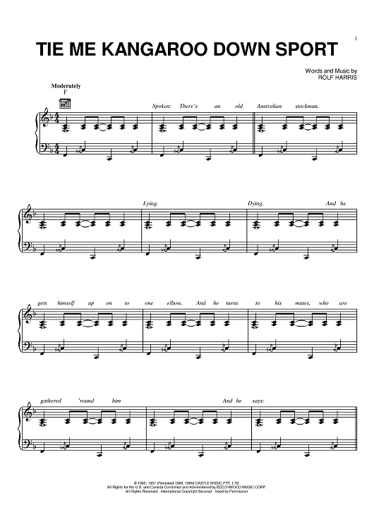 "Tie Me Kangaroo Down Sport" Sheet Music by Rolf Harris
