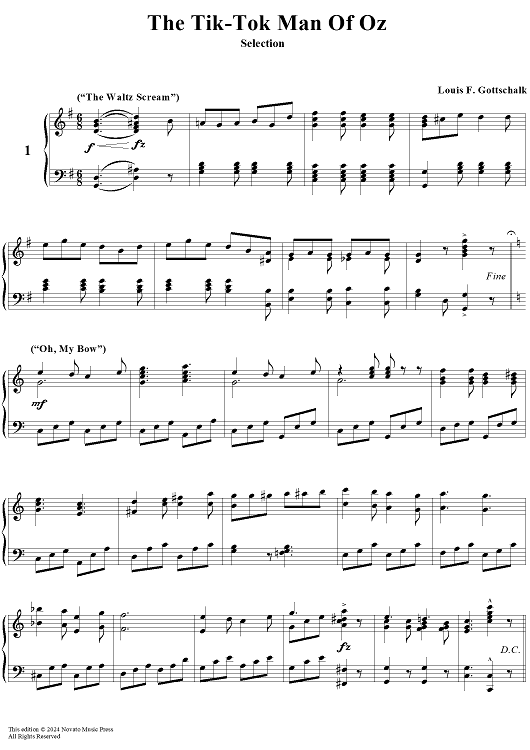 "Tik - Tok Man Of Oz medley" Sheet Music by Louis F. Gottschalk