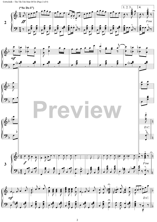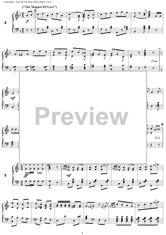 Digital Sheet Music for Tik - Tok Man Of Oz medley by Louis F. Gottschalk scored for Piano Solo; id:268230