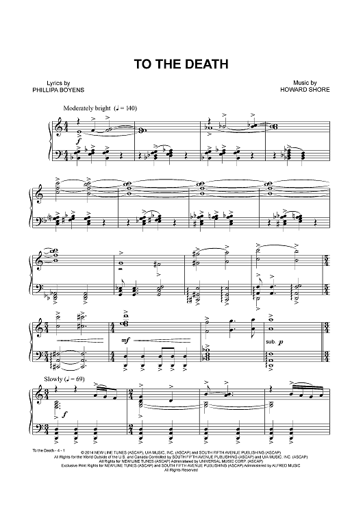 Digital Sheet Music for To The Death by Howard Shore, Philippa Boyens scored for Piano/Vocal; id:449574