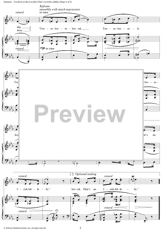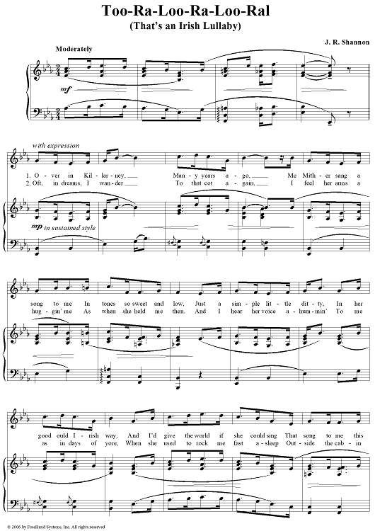 Digital Sheet Music for Too-Ra-Loo-Ra-Loo-Ral (That's An Irish Lullaby) by James R. Shannon scored for Piano/Vocal; id:320931