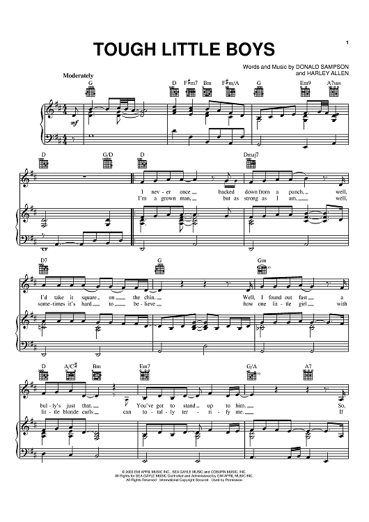 Digital Sheet Music for Tough Little Boys by Don Sampson, Harley Allen, Gary Allan scored for Piano/Vocal/Chords; id:372144
