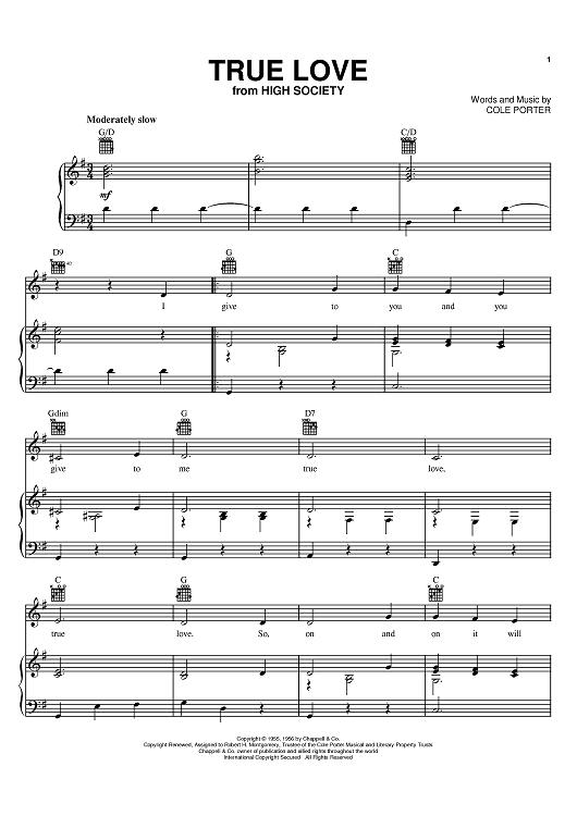 Digital Sheet Music for True Love by Bing Crosby, Cole Porter, Grace Kelly scored for Piano/Vocal/Chords; id:368145