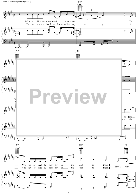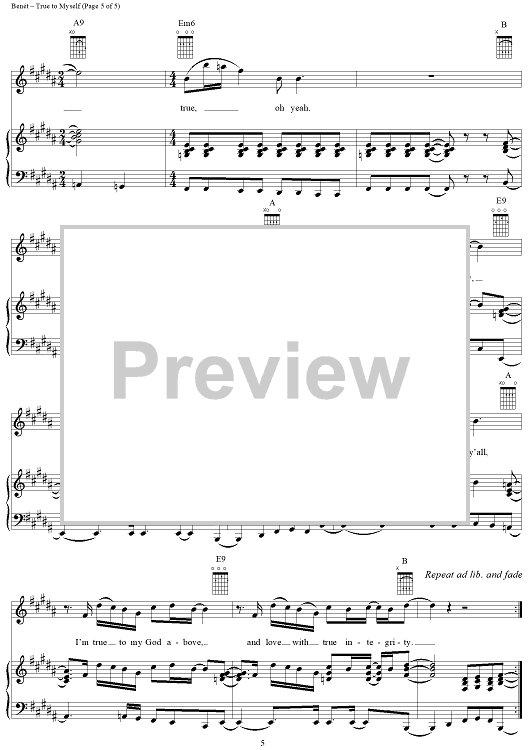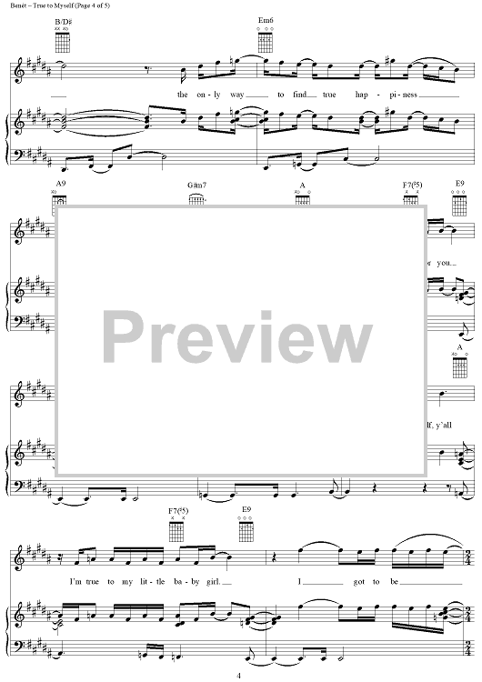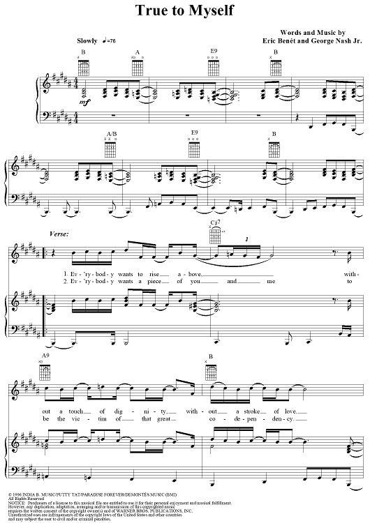 Digital Sheet Music for True to Myself - from Batman and Robin by Eric Benet, George Nash, Jr. scored for Piano/Vocal/Chords; id:110988