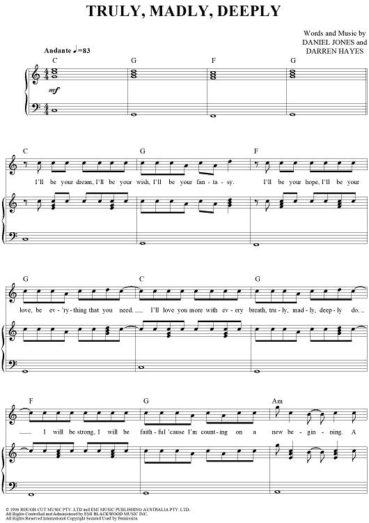 Digital Sheet Music for Truly, Madly, Deeply by Darren Hayes, Daniel Jones, Savage Garden scored for Piano/Vocal/Chords; id:368658