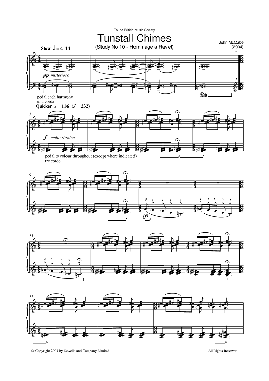 "Tunstall Chimes, Study No. 10 - Hommage A Ravel" Sheet Music by John McCabe