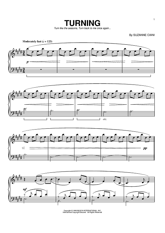 Digital Sheet Music for Turning by Suzanne Ciani scored for Piano; id:397788