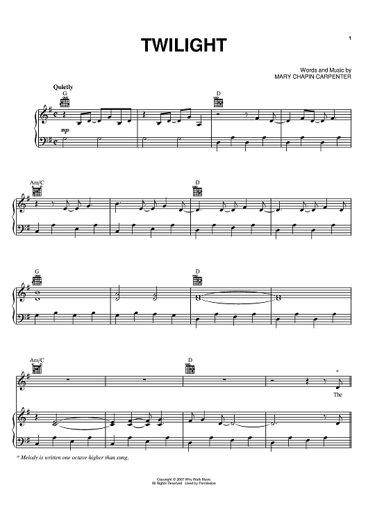 "Twilight" Sheet Music by Mary Chapin Carpenter